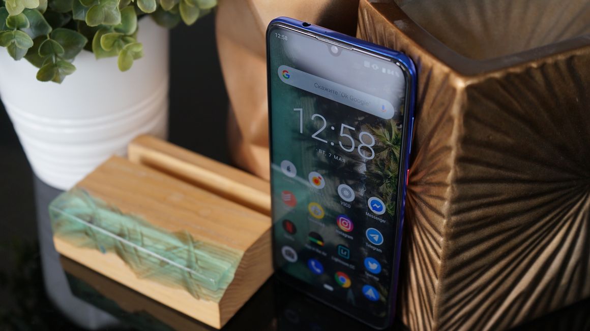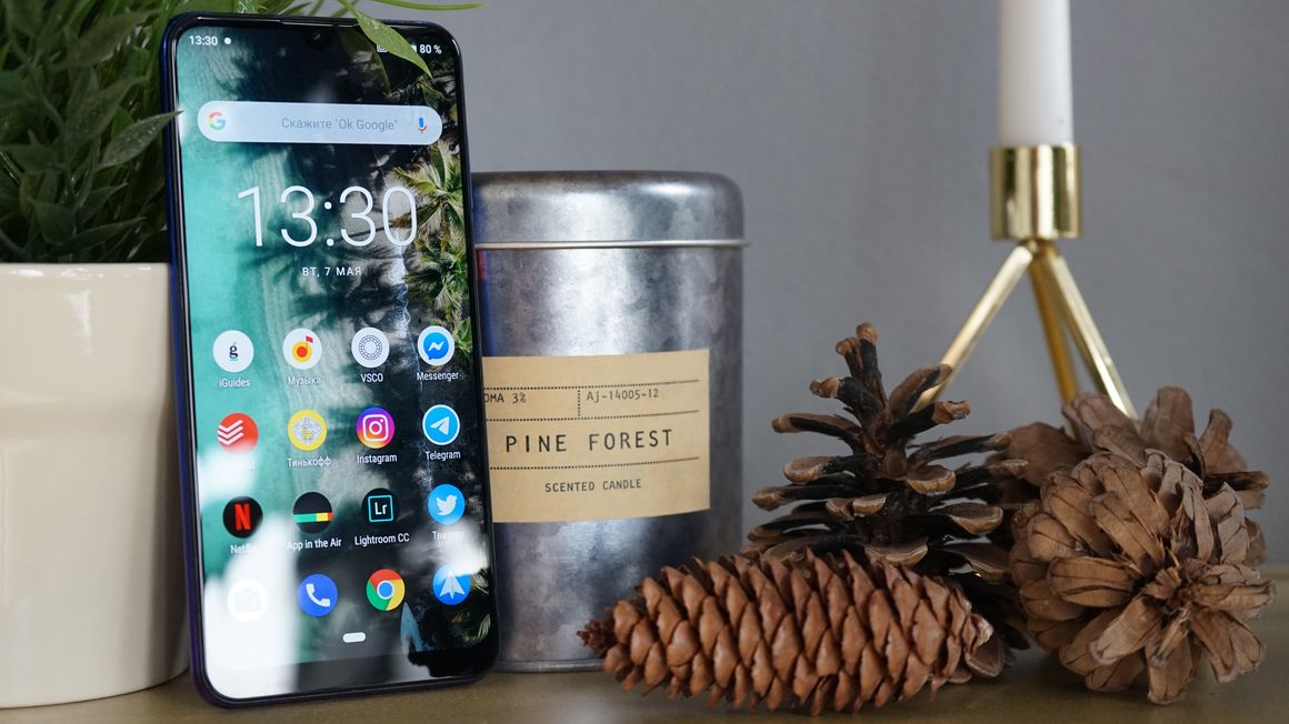 Экран — 6.3-дюймовая IPS панель с Full HD+ разрешением. Пропорции — актуальное соотношение 19:9, в верхней части есть лаконичный каплевидный вырез под камеру. По характеристикам дисплей отличный. У него точная цветопередача, хороший запас яркости, достаточная плотность пикселей (400 ppi) и есть олеофобное покрытие. В настройках предлагается менять баланс белого и цветопередачу, есть поддержка ночного режима с уменьшением синих оттенков, заодно есть опции поведения светового индикатора. Рамки по периметру очень тонкие, что положительно сказывается на эргономике, то есть при достаточно большой диагонали устройством пользоваться удобно и нет проблем с тем, чтобы тянуться к противоположной стороне экрана