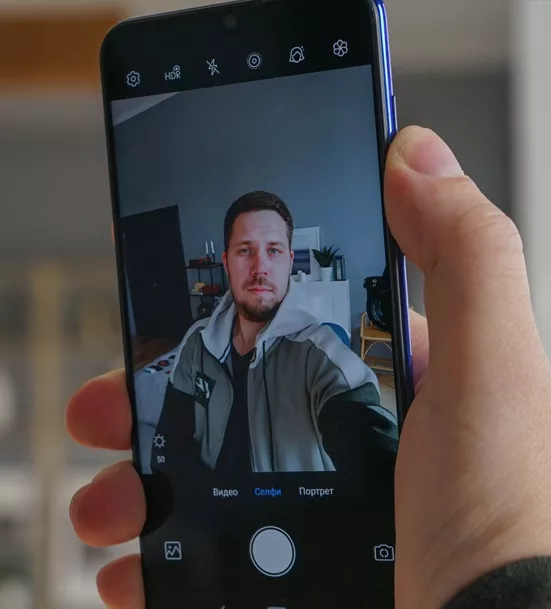 Мощная селфи-камера стала одной из главных особенностей ZTE Blade V10. С примерами съемки мы подготовим отдельный материал, где все покажем в деталях, а сейчас пройдемся по фактам. В ZTE Blade V10 стоит матрица с разрешением 32 Мп и крупным размером пикселя 1.6µm. Используется светосильная 5-компонентная оптика, значение апертуры составляет f/2.0, что позволяет делать качественные фото даже при недостаточном освещении. Из необычного — есть система фазовой автофокусировки, редкость для селфи-камер. Удачно подобрано и программное обеспечение портретной камеры. Используется искусственный интеллект, есть довольно деликатный алгоритм бьютификации, реализована поддержка HDR, умное увеличение Smart Zoom, а также размытие фона в реальном времени. Селфи на ZTE Blade V10 получаются высочайшего качества, такой фронталке позавидуют даже многие основные камеры смартфонов этого же ценового сегмента.