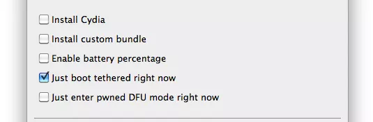 Если вдруг, вы все таки ребутнулись после привязанного джейла - запустите Редсноу и выбирете только пункт Just boot tethered right now, и ваш девайс оживет.