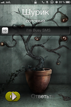 C этим твиком вы можете отклонить входящий вызов и отправить в ответ смс, уведомляющее, что вы сейчас не можете говорить, всего лишь одним слайдом на локскрине![/NEWS] Вы наверняка были в ситуации, когда, сидя на совещании, паре или за рулем, вы не могли ответить на входящий вызов, но хотели бы дать понять, что перезвоните, как только освободитесь? I'm Busy SMS позволит теперь вам это сделать!
