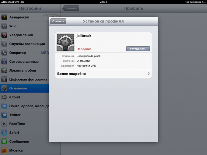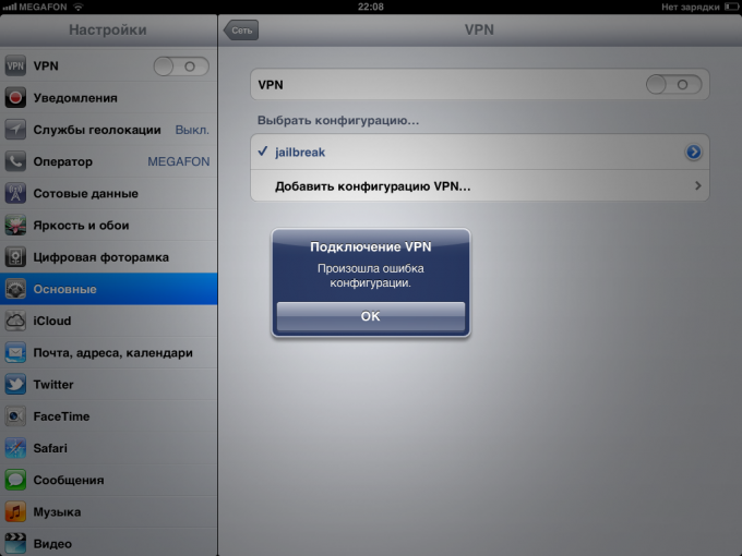 (снова ждем, пока остановится прокрутка). далее заходим в сеть - включаем VPN, ждем пока появится сообщение об ошибке.