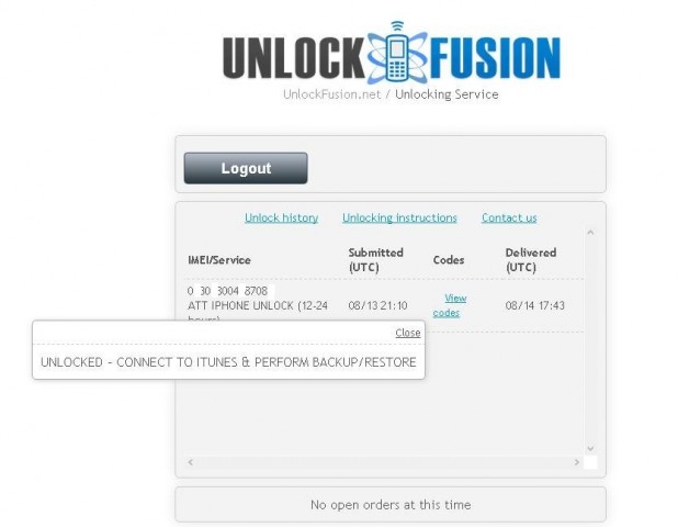 - Периодически обновляем сайт, смотрим за статусом. Через 18 часов (может быть как больше, так и меньше) в графе "codes" будет надпись - "view codes". Теперь ваш телефон официально разблокирован.