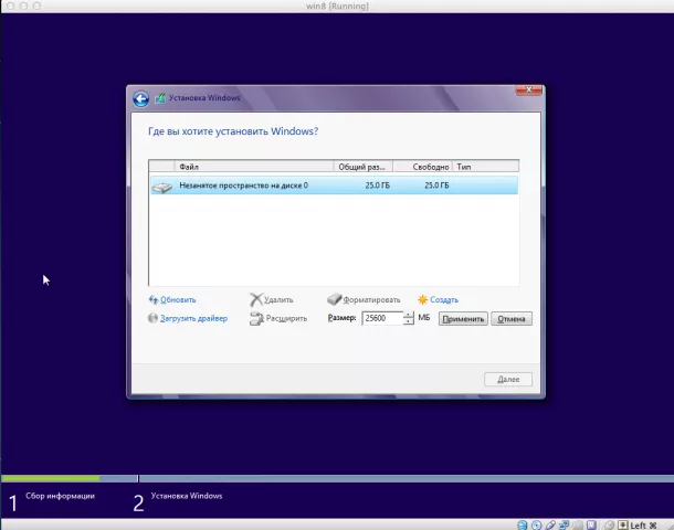 И наша виртуальная Windows почти готова к установке, осталось немного настроить.