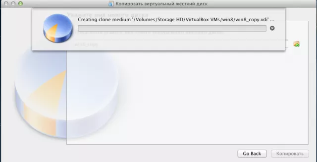 Для этого в VirtualBox вибираем "Менеджер виртуальных дисков" и создаем копию диска с именем win8_copy.![]() ![]() Только в этот раз диск должен быть "Фиксированым" ![]() Ждем окончания операции клонирования ![]() Образ копии диска будет находится в папке в которой хранится ваша виртуальная машина. |
